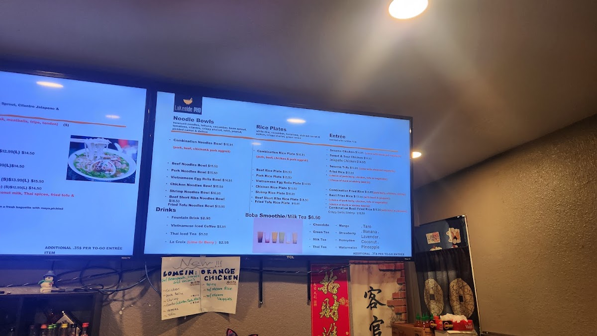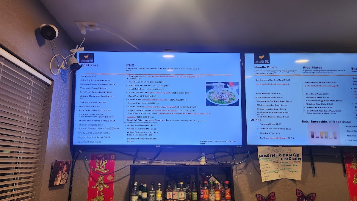 Lakeside Pho offers a diverse and flavorful menu that showcases a blend of traditional Vietnamese dishes and creative modern twists. For those craving something hearty, the Well Done Brisket Pho is a standout, with tender, slow-cooked beef brisket served in a rich, aromatic broth. If you're in the mood for something lighter, the Chicken Pho is an excellent option, featuring succulent pieces of chicken paired with a comforting, savory broth. Vegetarians can enjoy the Veggie Pho, a satisfying alternative filled with fresh vegetables and a fragrant, flavorful broth.